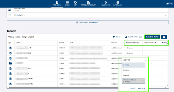 Nyní je možné v Projekt Manageru aktivovat metadata (v záložce NASTAVENÍ). Tato funkce umožňuje přehledný náhled na data a vytvoření filtrů na základě jednotlivých atributů, které lze přímo upravit v Projekt Manageru.