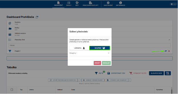 Své vlastní přednastavené filtry nyní můžete sdílet i se skupinami, nejen s jednotlivými uživateli projektu. Toto platí pro filtry ve všech záložkách (Prohlížeč, Úkoly, BCF a Pracovní postupy).