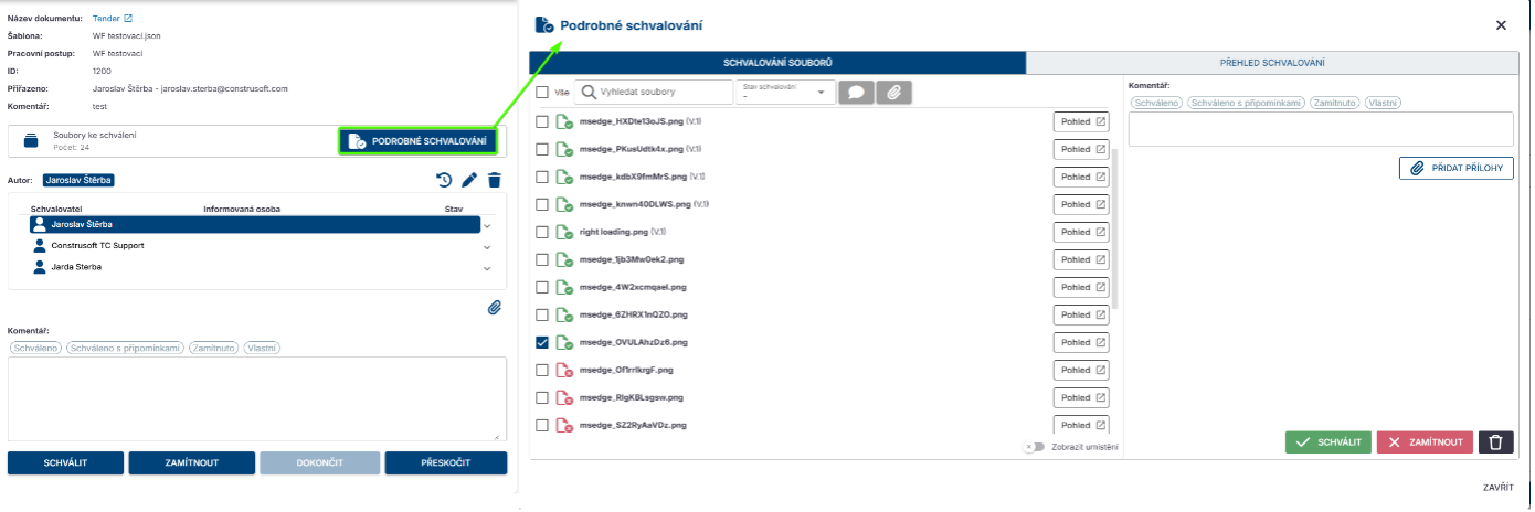 Na kartě Editor byla přidána možnost "Podrobného schvalování a dokončení". Umožňuje se vyjádřit k jednotlivým souborům v rámci celého pracovního postupu na složce. Tyto soubory mohou být publikovány samostatně, což usnadňuje vícekrokový schvalovací proces a zajišťuje lepší přehled o průběhu schvalování v Dokument Workflow. Před dokončením je možné zobrazit souhrnný přehled všech vyjádření pro usnadnění publikace.