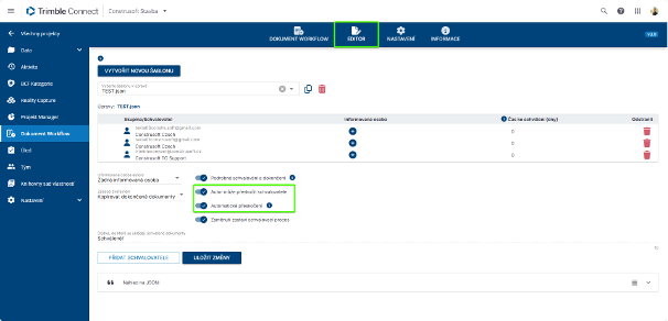 Poslední změnou, kterou prošel EDITOR, je nová možnost automatického přeskočení schvalovatelů, u nichž vypršel čas pro vyjádření. Toto chování se nastavuje přímo v pracovním postupu a platí pro všechny typy souborů a složek.