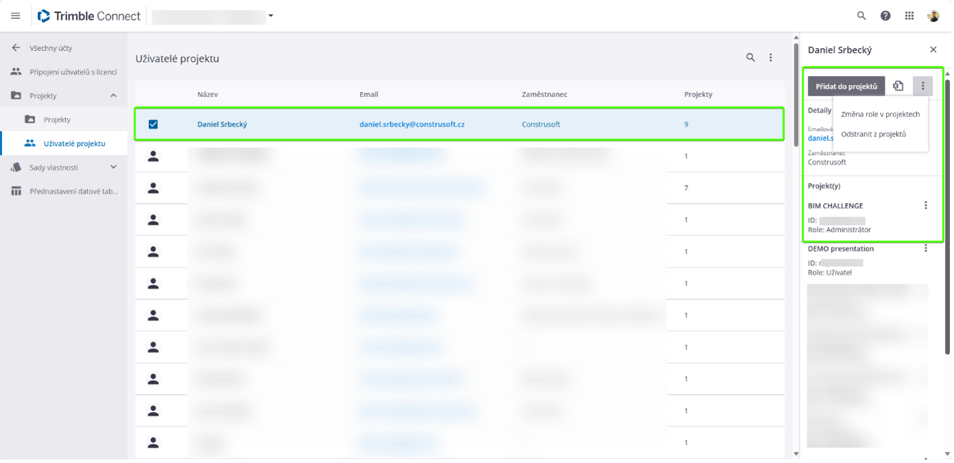 Správci nyní mají k dispozici nový ovládací panel, který umožňuje snadnější správu uživatelů napříč projekty vlastněnými jejich účtem. Tento panel umožňuje: