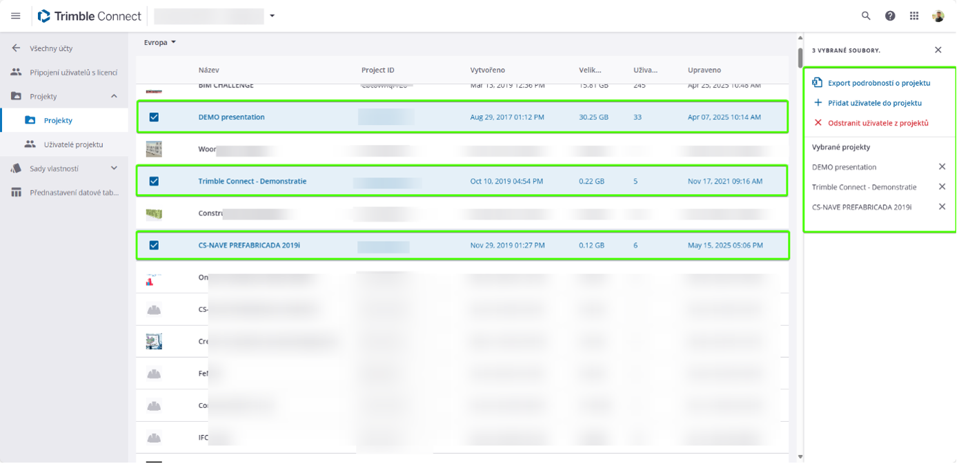 Firemní a projektové licence Trimble Connect již obsahují tyto rozšíření.