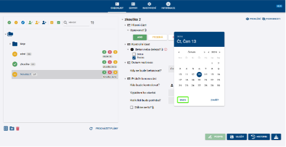 V poli pro datum je nyní k dispozici možnost DNEŠNÍ, která automaticky vyplní aktuální datum.
