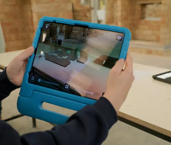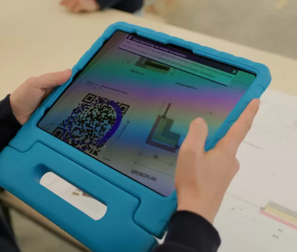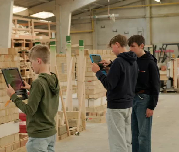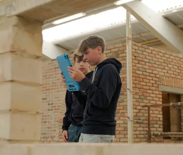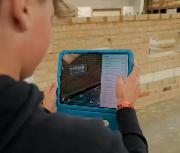 Voor veel leerlingen is een 2D-plan lastig te begrijpen. Met Trimble SiteVision (voorheen Trimble Connect AR) wordt dit veel concreter: bouwplannen komen letterlijk tot leven. Het team van leerkrachten bedacht zelf om QR-codes op bouwplannen te plaatsen en introduceerde dit in de lessen. Leerlingen zien hierdoor in augmented reality hoe een ontwerp in werkelijkheid eruit komt te zien. Ook bij een opdracht om een spouwmuur te metselen, gebruiken ze QR-codes: leerlingen schakelen lagen aan en uit, lopen rond het digitale model alsof het al gebouwd is en zien meteen het eindresultaat.