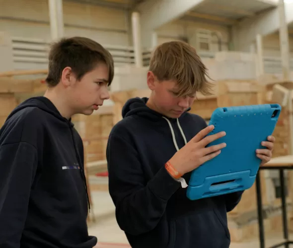 Voor docent Kevin Bauwens ligt de kracht in de beleving: “Op een computerscherm zie je veel, maar de meerwaarde is dat leerlingen écht kunnen rondlopen in hun ontwerp. Ze begrijpen sneller plannen, ontdekken fouten en zijn enthousiast om ermee te werken.” Leerlingen bevestigen dit: zij vinden het ‘erg handig en leuk’ dat ze via Trimble SiteVision direct zien of hun werk klopt en op de juiste plek staat.