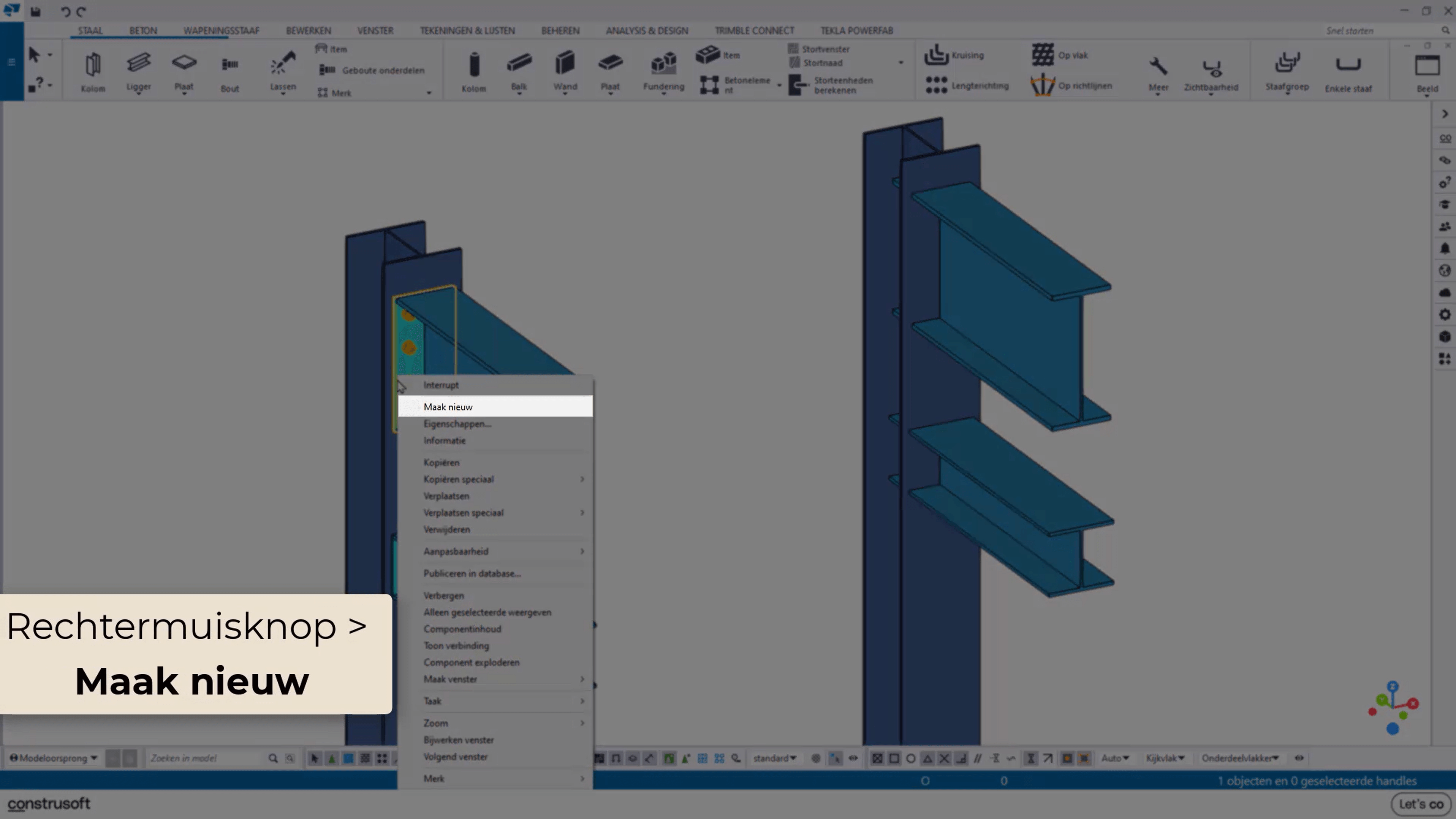 Er is nu een maak-knop toegevoegd in het dialoogvenster van het component, die ook via de rechtermuisknop gebruikt kan worden. Hierdoor kun je snel een toegepast component met specifieke instellingen op een andere locatie in het model plaatsen, zonder eerst het component in de applicatiecomponentendatabase te zoeken.