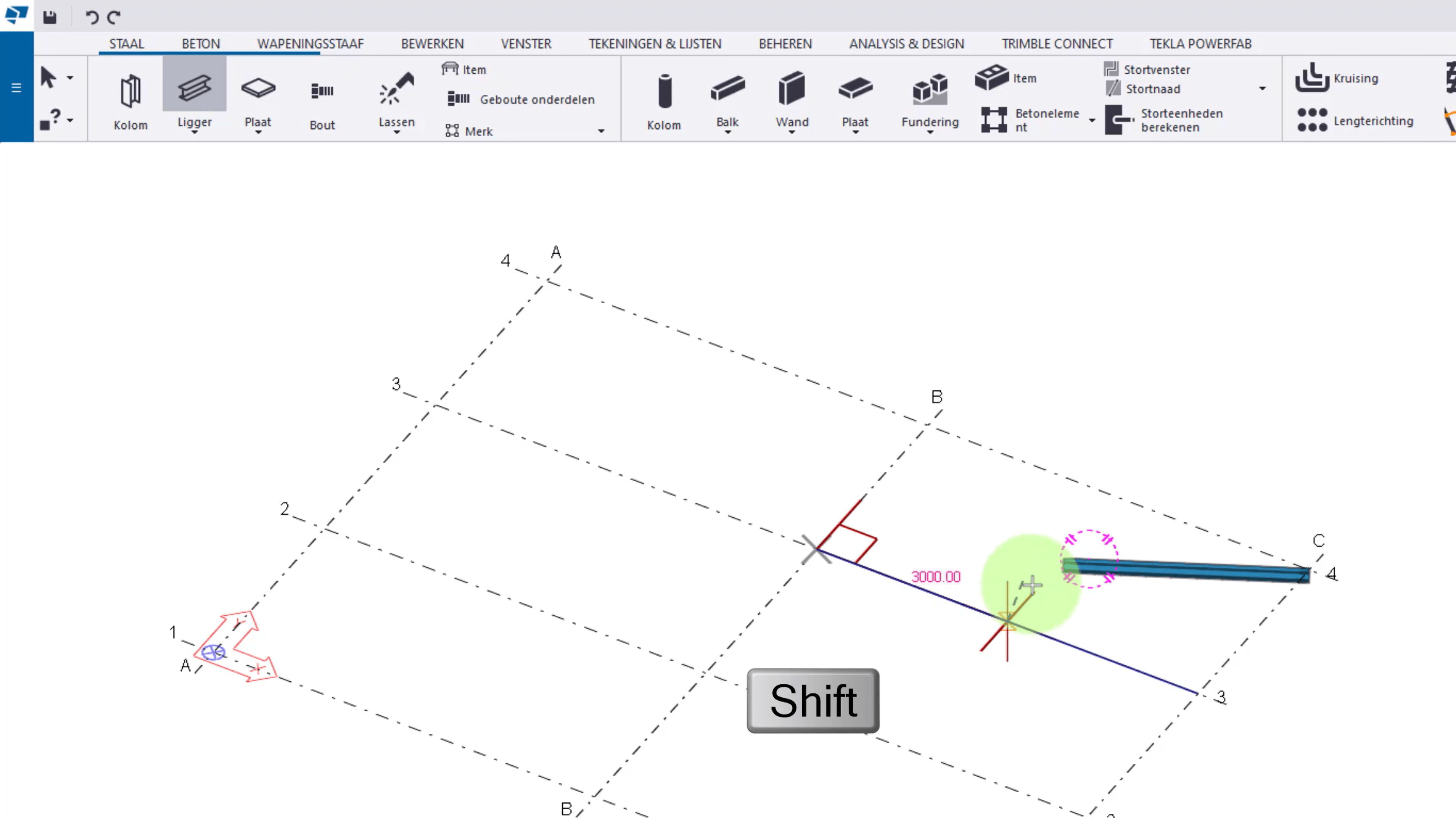 Met de Shift-toets kun je nu de modelleerrichting tijdelijk vergrendelen tijdens het modelleren in Tekla Structures om eenvoudiger te snappen.