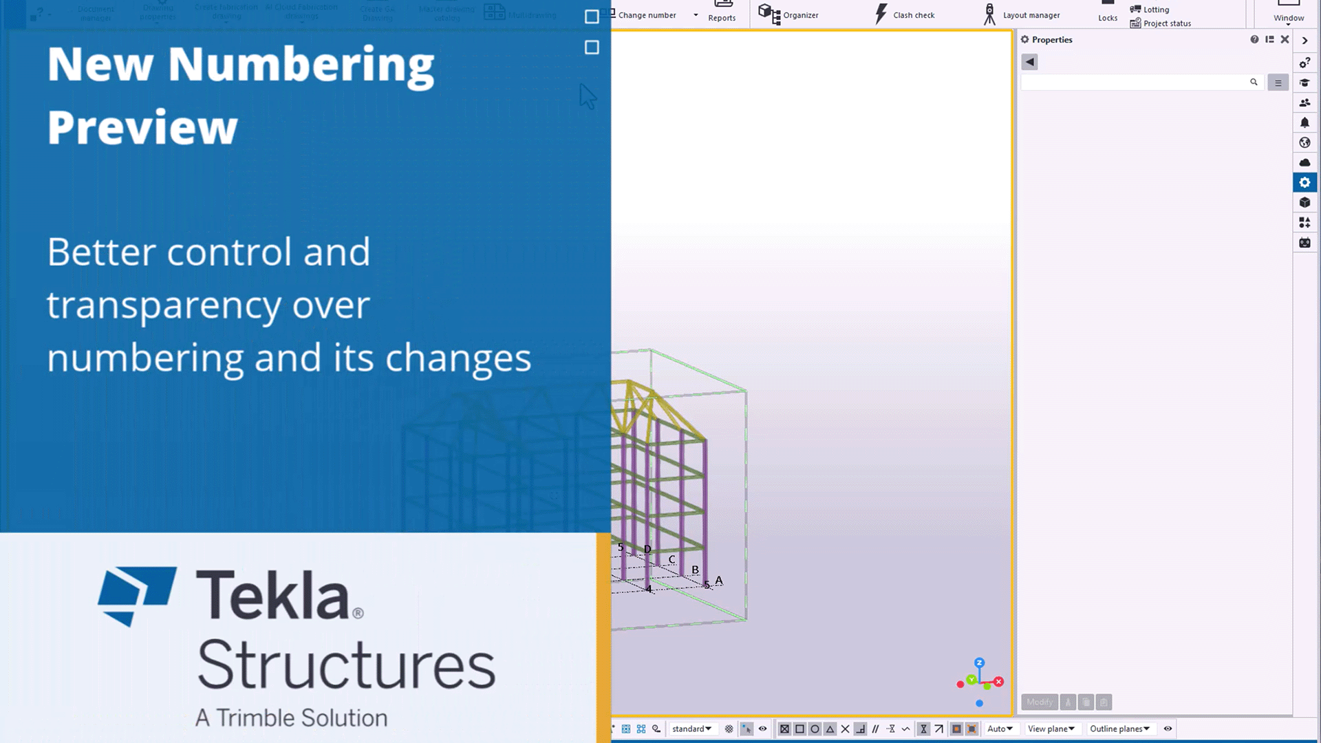Tekla Structures 2025 biedt verbeterde controle en transparantie over nummering en wijzigingen daarin. De nieuwe functie Nummering Preview maakt het mogelijk om voorgestelde nummers te bekijken voordat ze daadwerkelijk worden toegewezen aan modelobjecten, zoals onderdelen, merken en wapening. Dit helpt nummeringsfouten te voorkomen en maakt het eenvoudiger om overlappende positienummers te herkennen. Zodra de nummers zijn toegewezen, worden ze ook weergegeven in het dialoogvenster voor de onderdeel-eigenschappen in Tekla Structures.
