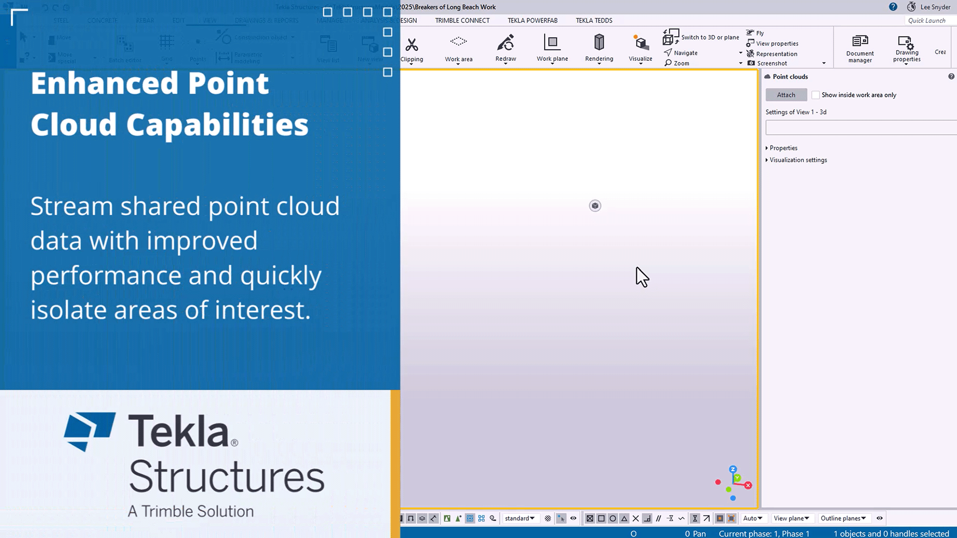 Het streamen van point cloud-gegevens via de Trimble Reality Capture Service bespaart schijfruimte en zorgt ervoor dat teamleden altijd up-to-date blijven. De nieuwe kijkbox maakt het makkelijker om snel een specifiek gedeelte van een model te isoleren, zodat gebruikers zich volledig kunnen concentreren op dat gedeelte.