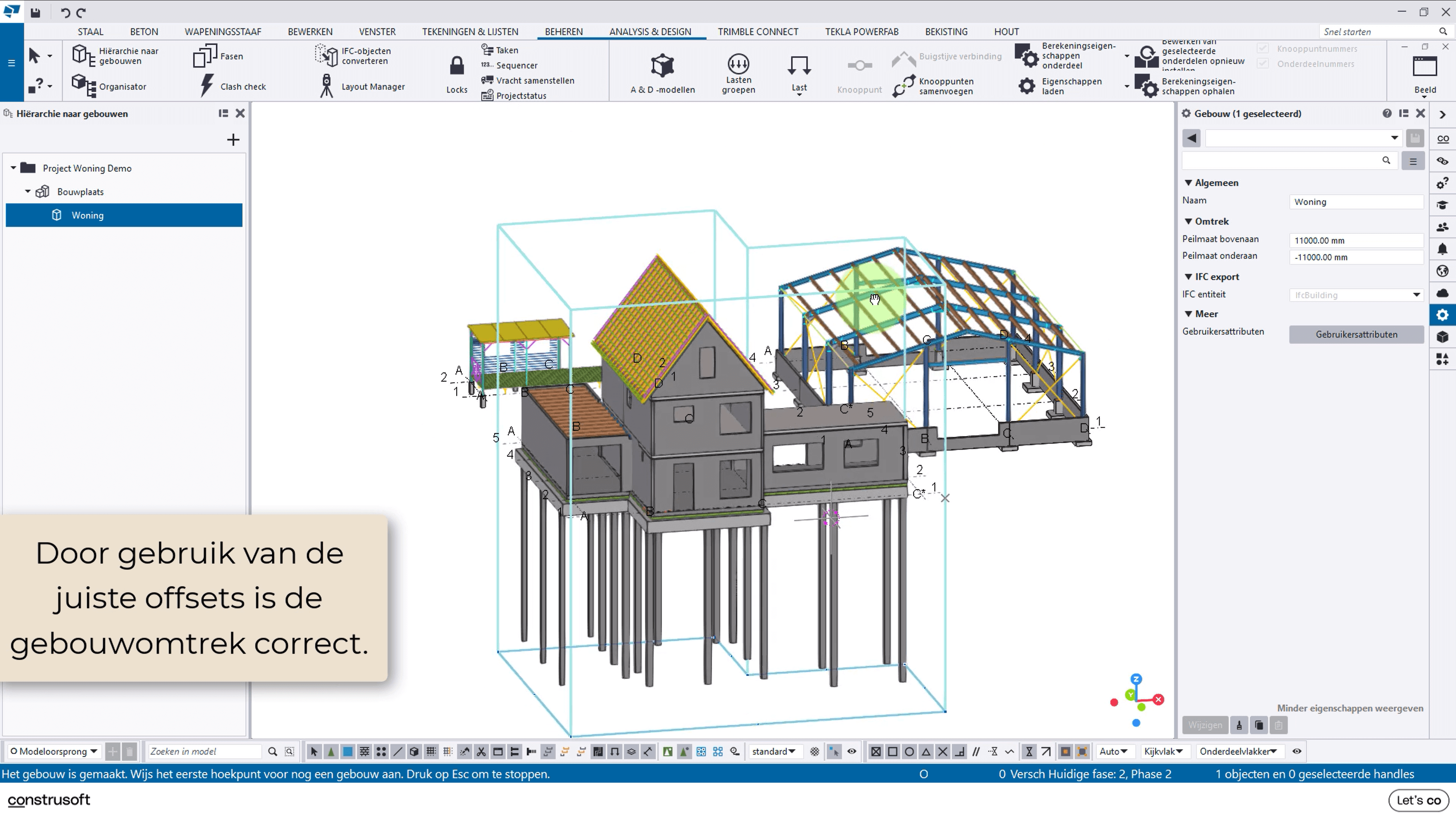 De gebouwhiërarchie is nu standaard beschikbaar in Tekla Structures 2025, met verbeteringen in de hiërarchiestructuur. Gebruikers kunnen nu meerdere gebouwen definiëren, wat een veelgevraagde wens was. Bovendien kunnen merken handmatig aan elementen in de gebouwhiërarchie worden toegewezen en kan de gebouwomtrek nu ook met een polygoon worden gedefinieerd, in plaats van alleen met een rechthoek. Dit resulteert in minder overlap en minder handmatig werk.